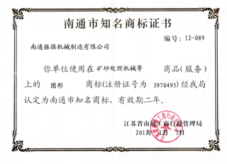 江蘇振強(qiáng)機(jī)械科技股份有限公司 >> 公司簡介 >> 資質(zhì)證書 >> 南通市知名商標(biāo)證書