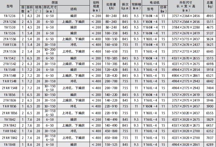 YA型圓振動(dòng)篩結(jié)構(gòu)類型