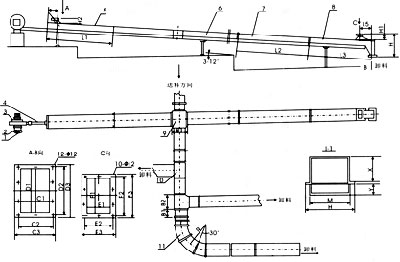 空氣斜槽輸送機(jī)由數(shù)個薄鋼制成的槽子聯(lián)接組成,并沿其輸送方向布置成一定的斜度??諝廨斔托辈鄄垠w沿著輸送方向安裝成向下傾斜4%~6%的斜度。